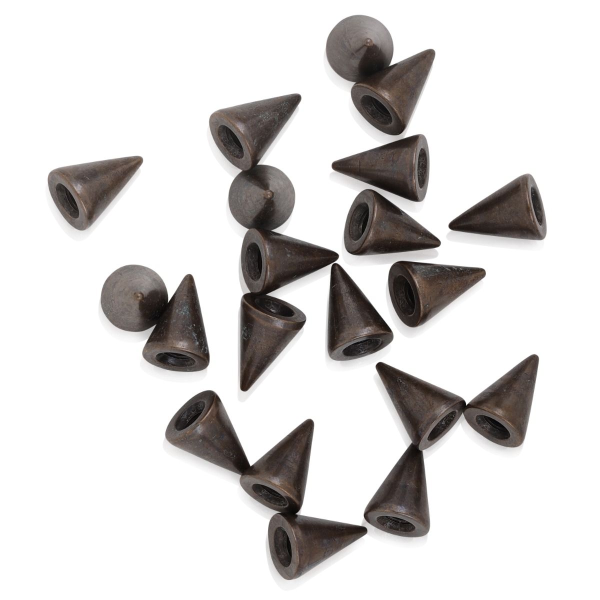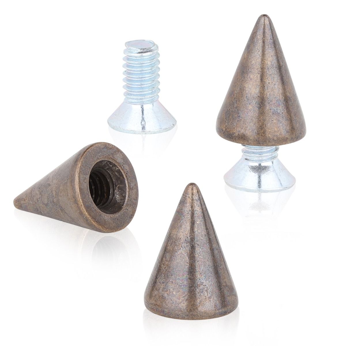 13mm (0.5 inch) tall cone spike. This spike is shaped exactly like a cone. Comes with a screw for application. We surfaced this spike with an Antiquish Brass look.